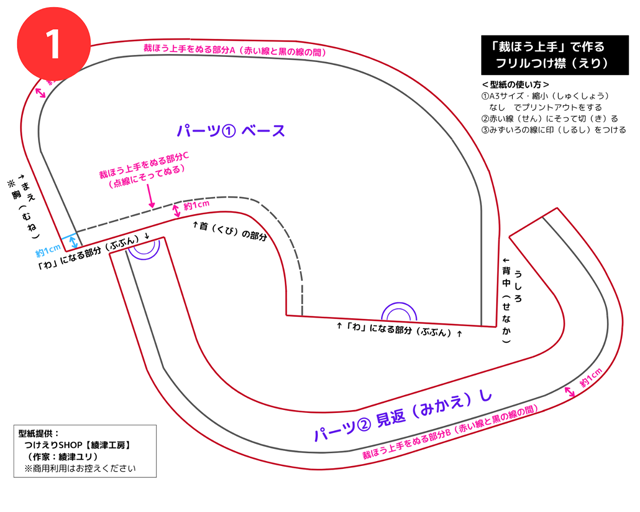 ※ぬる箇所は、型紙の「裁ほう上手をぬる部分C」の部分