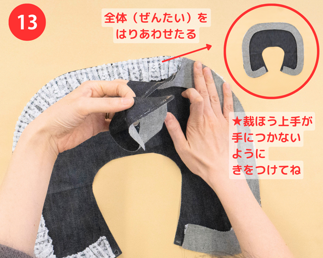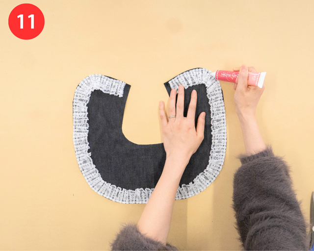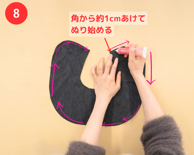 ⑪と⑫の両方で「裁ほう上手」をぬって、さらにしっかりくっつくようにするよ!