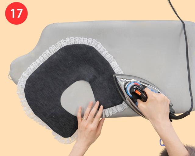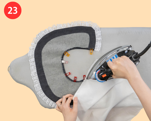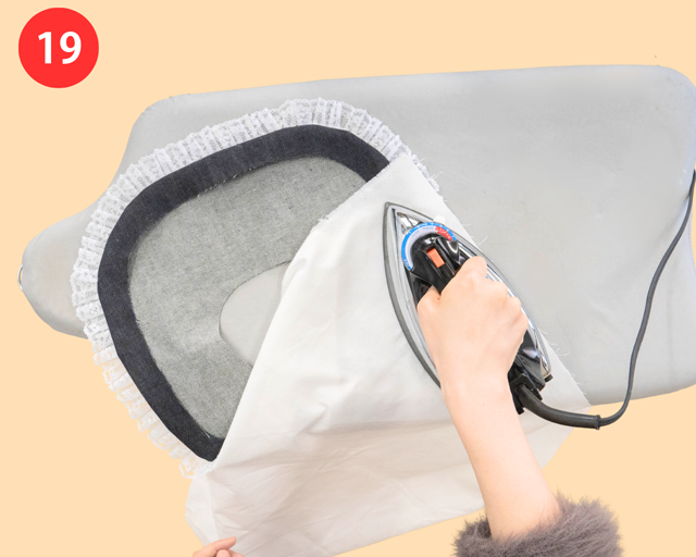 全体をひっくり返したら、アイロンをかけて形を整える。