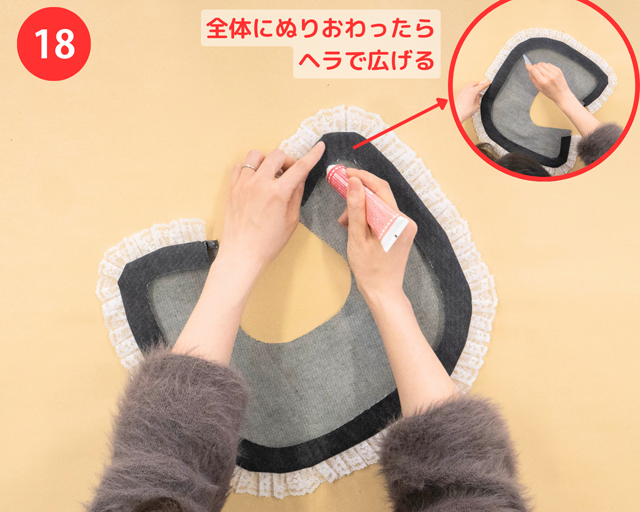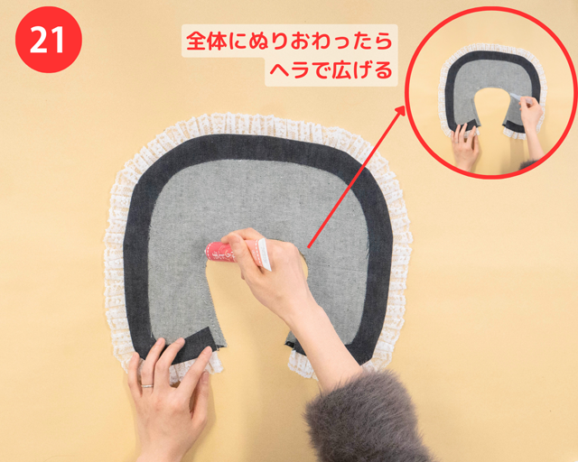 フリルのふちの部分(❽で「裁ほう上手」をぬった部分)に、裁ほう上手をぬりヘラでなじませる。