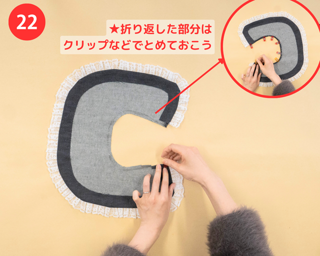 ★折り返した部分は、クリップや洗濯ばさみではさんで固定(こてい)しておこう