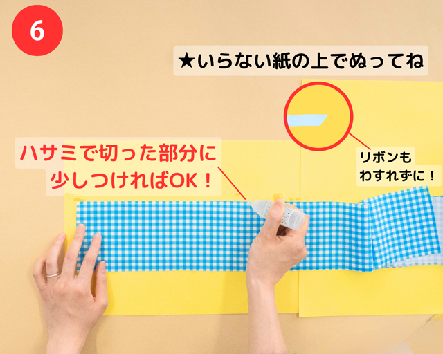 ※リボンが通る穴(あな)をつくるイメージで貼り合わせてね