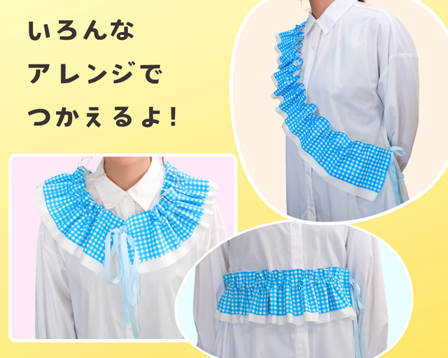 肩(かた)からかけたり、襟(えり)にしたり、ベルトみたいに使ったり…
