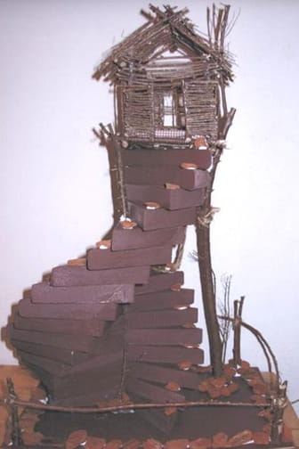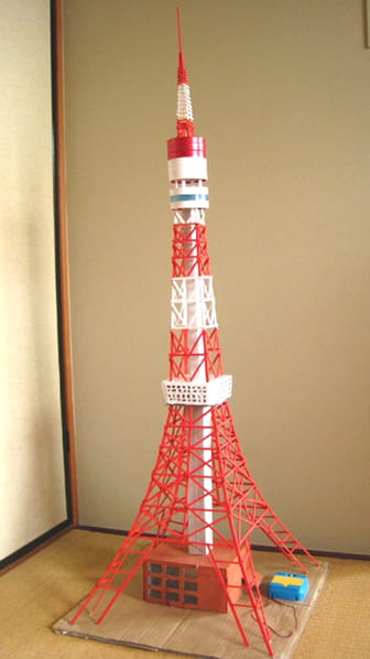 「東京タワー~空き箱と桧材をボンドで組み立てて」