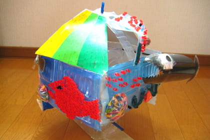 ペットボトルやストロー、ティッシュなど身近(みぢか)にあるもので絵本(えほん)の世界(せかい)を見事(みごと)に表現(ひょうげん)した作品(さくひん)ですね!