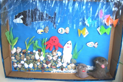 水族館(すいぞくかん)にいったときのたのしかったおもい出が伝(つた)わってくるたのしい作品(さくひん)ですね!