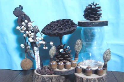 どんぐりの表情(ひょうじょう)がひとつひとつ違(ちが)っていて手づくりならではですね!まわりのそうしょくもすてきです!