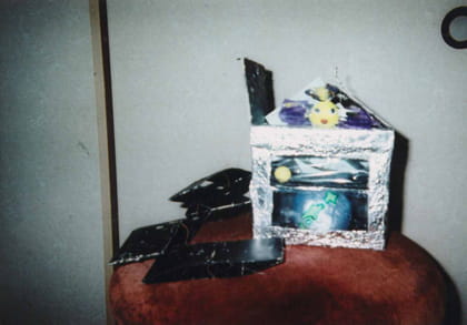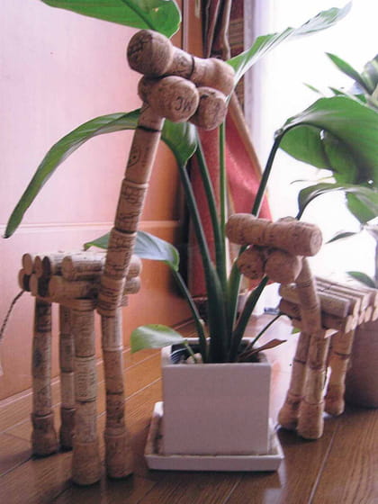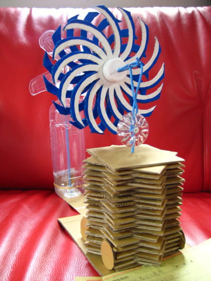 青(あお)と白のコントラスがとてもきれいな羽根(はね)や、アンティーク調(ちょう)になるようにきれいにつまれた段(だん)ボールなど、とても考(かんが)えられた作品(さくひん)ですね!