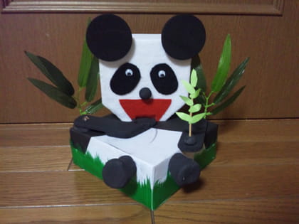 パンダの表情(ひょうじょう)がとてもかわいくできましたね!パンダの手を動(うご)かして、口にコインが入る動(うご)きで、たのしく貯金(ちょきん)ができそうですね!