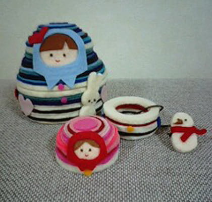 いろいろな色(いろ)の生地(きじ)を何層(なんそう)にも重(かさ)ねてつくってあり、グラデーションがとてもすてきな作品(さくひん)ですね!作風(さくふう)もとてもかわいいです!