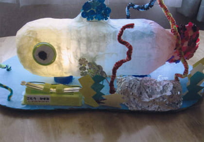 貝殻(かいがら)やビーズなどいろいろな素材(そざい)をつかって、かわいいキャラクターができましたね!色合(いろあ)いもとてもかわいらしいです!
