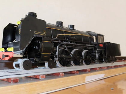 実物(じつぶつ)の蒸気機関車(じょうききかんしゃ)にひけをとらないリアル感(かん)があります。色(いろ)づけや組(く)み立てを工夫(くふう)したたまものですね。