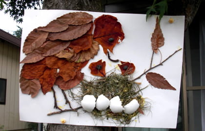 葉(は)っぱや枝(えだ)のつかいかたがすばらしいですね!あかちゃん鳥(どり)の鳴声(なきごえ)がきこえてきそうです。