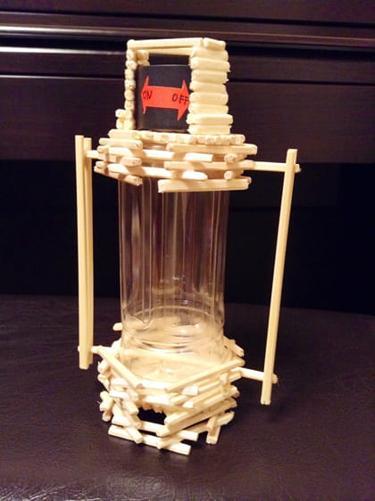 家(いえ)にあるものだけでつくったとはおもえない作品(さくひん)です。バランスよく材料(ざいりょう)が配置(はいち)されていますね。光(ひか)る基板(きばん)をつかったのが迫力(はくりょく)を増(ま)しています!