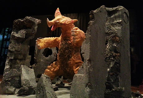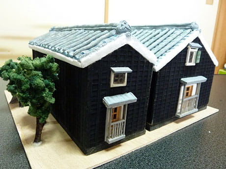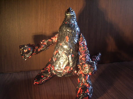 映画(えいが)のワンシーンを見ているようです。ゴモラは、絵の具(えのぐ)をぬり重(かさ)ねることですてきな色(いろ)あいに仕上(しあ)がり、がれきは、発泡(はっぽう)スチロールの質感(しつかん)を上手(じょうず)に生(い)かすことができましたね。
