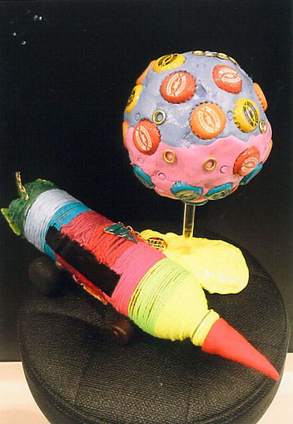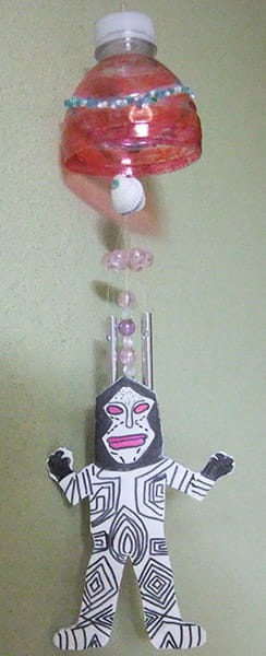 作品名(さくひめい)が、ユニークでおもしろい!また、ペットボトルと、ダダの目の赤(あか)がアクセントになっていて、モダンでかっこいい作品(さくひん)に仕上(しあ)がりました。