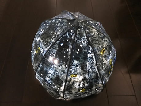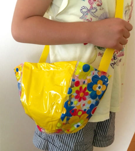 水に濡(ぬ)れても大丈夫(だいじょうぶ)なように、ビーチボールをリメイクしたというアイデアがいいですね。お母(かあ)さんにお手伝(てつだ)いしてもらいながらミシンもかけてらっしゃるそうで、ちゃんと実用性(じつようせい)を高(たか)くしたのも大切(たいせつ)なことだとおもいます。