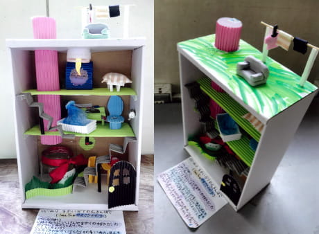 部門名(ぶもんめい)のとおり、写真(しゃしん)がかわいらしかった方(かた)を大賞(たいしょう)に。牛乳(ぎゅうにゅう)パックに色紙(いろがみ)をはって、ランドセル型(がた)の貯金箱(ちょきんばこ)を制作(せいさく)した写真(しゃしん)を投稿(とうこう)してくれました。ボタンのイチゴなどこまかいところもよくできています。ボンド 木工用(もっこうよう)を一生懸命(いっしょうけんめい)牛乳(ぎゅうにゅう)パックにぬっているお子さんのようすがほほえましいですね。