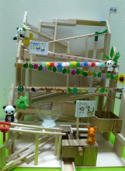 高学年(こうがくねん)は力作(りきさく)ぞろいでしたが、発泡(はっぽう)スチロールにつかえる接着剤(せっちゃくざい)を上手(じょうず)につかって、美(うつく)しいブランコをつくった方(かた)に決(き)めました。デザインも造形(ぞうけい)も見事(みごと)でアート作品(さくひん)のようです。ぜひこのまま美術(びじゅつ)の才能(さいのう)を伸(の)ばして、いろんな作品(さくひん)をつくってほしいなとおもいます。