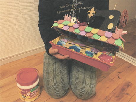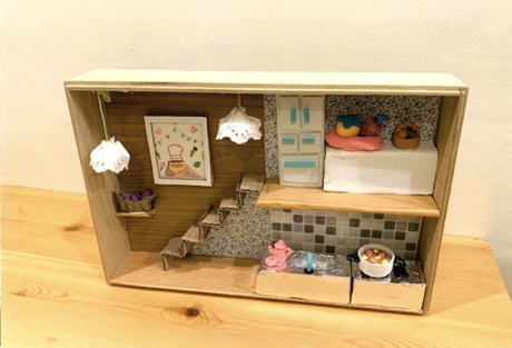 細(こま)かいところまで作(つく)ったところがいいです。小(ちい)さいものを作(つく)るのは大変(たいへん)だったでしょうね。さらにそれを小(ちい)さな部屋(へや)の中(なか)、台所(だいどころ)に貼(は)るのも苦労(くろう)しただろうなあ、と思(おも)います。