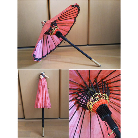 なんといっても和傘(わがさ)の趣(おもむき)が忠実(ちゅうじつ)に再現(さいげん)されているのが素晴(すば)らしいです。作(つく)り方(かた)をマスターするのは大変(たいへん)だったでしょうね。内部(ないぶ)もしっかりと作(つく)り、たためるのも見事(みごと)です。
