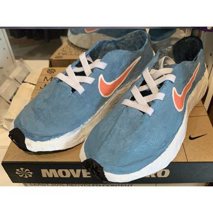 作品(さくひん)を見た瞬間(しゅんかん)、本物(ほんもの)のスニーカーと思(おも)ってしまいました。型紙(かたがみ)づくりから始(はじ)めて、靴(くつ)の立体感(りったいかん)を出した工夫(くふう)と努力(どりょく)に感動(かんどう)します。その結果(けっか)、生み出されたつま先の丸(まる)みなど、実物(じつぶつ)と見間違(みまちが)うほどの完成度(かんせいど)を高(たか)く評価(ひょうか)しました。本当(ほんとう)によくできたスニーカーです。