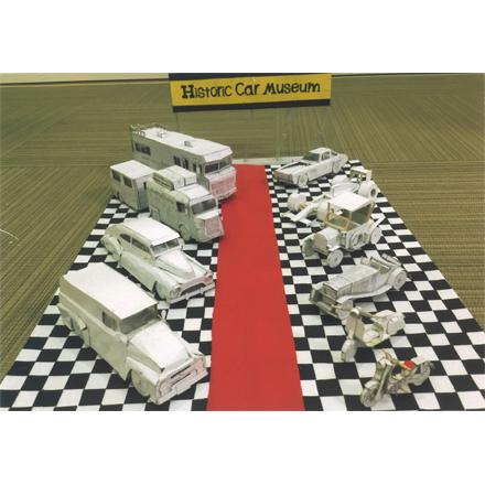 いやはやなんともすごい作品(さくひん)です。感動(かんどう)しました。個々(ここ)の自動車(じどうしゃ)の個性(こせい)、特徴(とくちょう)を表現(ひょうげん)した工夫(くふう)と努力(どりょく)には脱帽(だつぼう)します。おそらく細部(さいぶ)の接着(せっちゃく)には細心(さいしん)の注意(ちゅうい)を払(はら)われたことでしょう。さらに、あえて色(いろ)を塗(ぬ)らなかった点(てん)も作品を引(ひ)き立てたと思(おも)います。