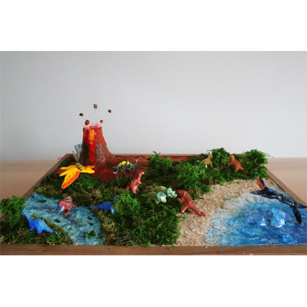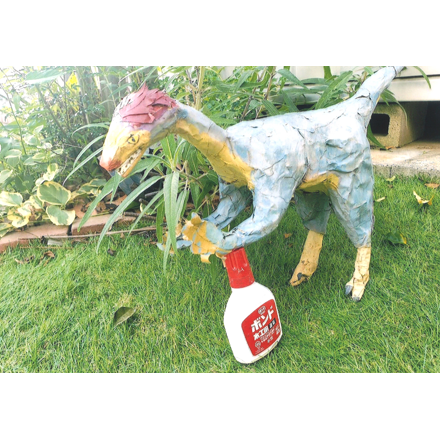 作品(さくひん)の大きさ、細(こま)かさも見事(みごと)ですし、テーマもよかったです。個々(ここ)の恐竜(きょうりゅう)のできばえもさることながら接着剤(せっちゃくざい)の使(つか)い方(かた)も実(じつ)に素晴(すば)らしいです。私(わたし)も思(おも)いつかない方法(ほうほう)に驚(おどろ)きました。いつか、作品のような世界(せかい)が来(き)たら素晴らしいことでしょうね。