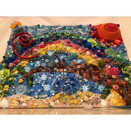細(こま)かな部分(ぶぶん)もよくできていますね。帽子(ぼうし)の一つ一つのデザインも素敵(すてき)なものばかりです。そして、ペットボトルのキャップを使(つか)った点(てん)も見事(みごと)な活用法(かつようほう)です。いつもなら捨(す)ててしまうものを材料(ざいりょう)として使うという、とっても大切(たいせつ)なことを勉強(べんきょう)されましたね。将来(しょうらい)は素敵な帽子デザイナーさんになれますよ。