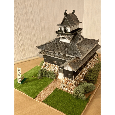 石垣(いしがき)の並(なら)べ方(かた)にとてもこだわっていて、まるで本物(ほんもの)のように見えます!「ボンド 木工用(もっこうよう)」ひとつで石垣から屋根(やね)まで全部(ぜんぶ)作(つく)れちゃうなんてとても驚(おどろ)きです!