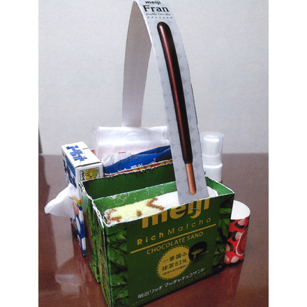 おかしの容器(ようき)の形(かたち)を活(い)かし、色々(いろいろ)なものをぴったり収納(しゅうのう)できて実用性(じつようせい)がある点(てん)が高評価(こうひょうか)。フランの取(と)っ手がかわいく、持(も)ち運(はこ)びもできていいですね。