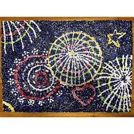 花火の色(いろ)もとってもきれいです。夜空(よぞら)をいろどる大きな、そしてきれいな花火をあらわした作品に感動(かんどう)しました。