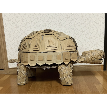 「こうら」の模様をつくる際(さい)のダンボールの大きさには、きっと苦労(くろう)したでしょうね。