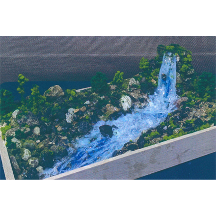 なんといってもリアルな滝(たき)の表現(ひょうげん)がすばらしい作品(さくひん)です。滝の水しぶきには、作者(さくしゃ)のこだわりが十分(じゅうぶん)に伝(つた)わってきました。