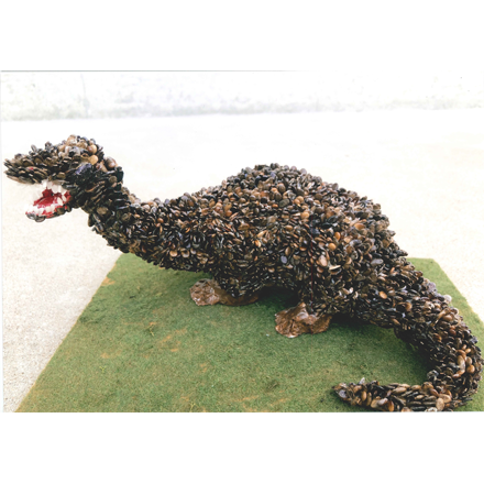 この作品(さくひん)には驚(おどろ)きました。ものすごいガラパゴスゾウガメを作(つく)りましたね。まるい「こうら」の出来栄(できば)えも見事(みごと)ですし、模様(もよう)の一つ一つに努力(どりょく)の跡(あと)があふれています。