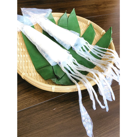 今(いま)にも泳(およ)ぎだしそうな釣(つ)りたてのリアルなイカに仕上(しあ)がっています。「ボンド 木工用(もっこうよう)」の半透明色(はんとうめいしょく)をうまく活用(かつよう)してパーツを作(つく)っただけでなく、足にもビーズをつけて吸盤(きゅうばん)を表現(ひょうげん)するという細部(さいぶ)までこだわって一生懸命(いっしょうけんめい)作りこんでいるところにとても感動(かんどう)しました。