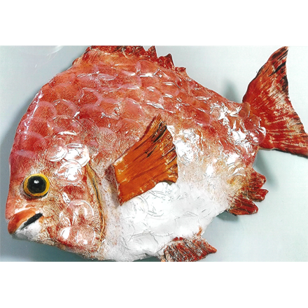 作品(さくひん)の色付(いろづ)けもとても上手!本物(ほんもの)そっくりな色味(いろみ)とうろこで、まるで魚屋(さかなや)さんにある本物の新鮮(しんせん)な鯛(たい)のようです。