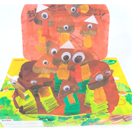 きのこの山の箱(はこ)を開(あ)けたら、びっくり!たくさんのきのこがお出迎(むか)えしてくれるユニークさが、きのこの山の雰囲気(ふんいき)とピッタリでたのしい気持(きも)ちにさせてくれます。べつのお菓子(かし)の箱を使(つか)って傘(かさ)オバケ風(ふう)のオバケが隠(かく)れているのも、こだわりがつまっていて素敵(すてき)ですね♪