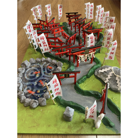 鳥居、のぼり旗のつくり方にはおどろきました。これだけの数(かず)の鳥居やのぼり旗を立てるだけでも大変(たいへん)だったでしょうね。