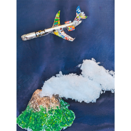 この発想(はっそう)には驚(おどろ)かされました。航空写真(こうくうしゃしん)と地図(ちず)を合体(がったい)させて厚紙(あつがみ)に貼(は)りつけてつくるという工作(こさく)は思(おもい)いつきません!