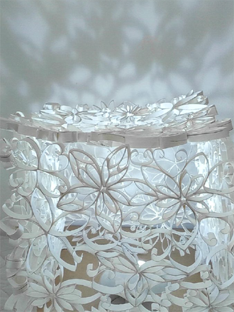 今回の作品では、紙管を切って、折って、また “ボンド” で貼り合わせて、紙管が “生まれたとき” とランプシェードの “作品になるとき”、2回 “ボンド” が活躍したようで嬉しいです!